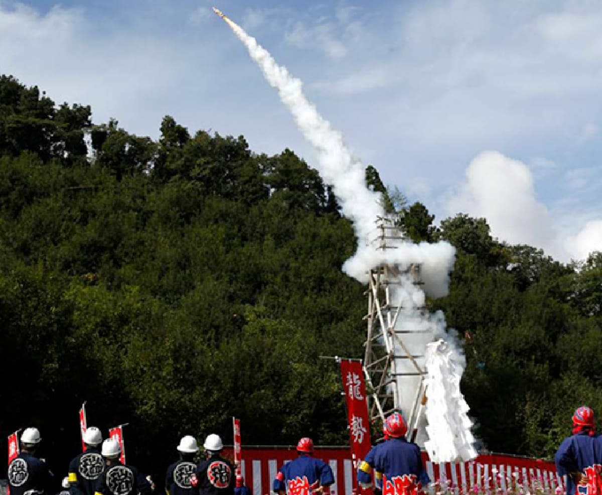 多数の流派に分かれ自慢の龍勢を天高く打ち上げて